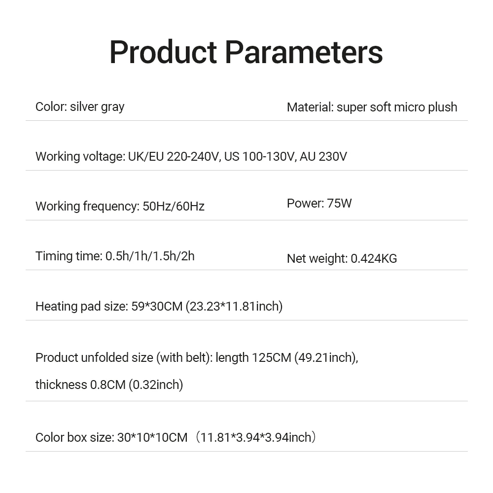 Heating pad size: 59*30CM (23.23*11.81inch)
